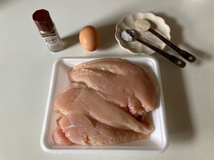 一般的にチキン南蛮に使うお肉は鶏もも肉ですが、わが家流は“鶏むね肉“を使います。