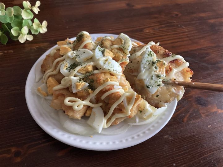 宮崎のご当地グルメとして有名な「チキン南蛮」。油で揚げた鶏もも肉を甘酢に浸し、タルタルソースをかけて食べるご飯泥棒な一品です。でも家で作ろうと思ったら、タルタルや甘酢の調合がけっこう面倒…ところが、今回ご紹介する「食べればチキン南蛮」なら、そんな手間は一切不要!下味をつけて焼いた鶏むね肉に、タルタルの材料を切ってのせて、調味料をかけるだけ。それでもおいしさは変わらないので、忙しい日にオススメですよ!ではクッキングスタート♪