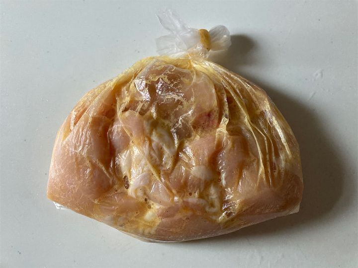 すぐ調理してもOKですが、しばらく置くと鶏むね肉がしっとりします。