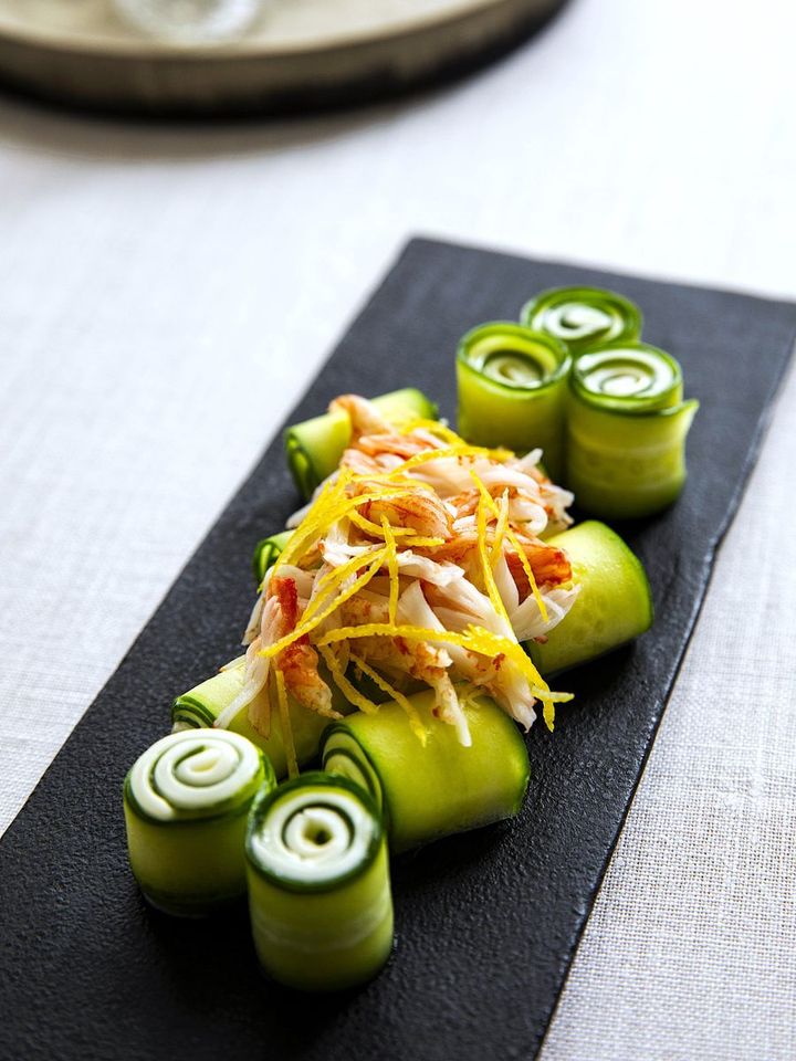 渦巻きにした緑のきゅうりに赤いかにかまと黄のゆずの皮を散らせば、見た目もとっても華やかに♪ きゅうりとチーズの鉄板コンビで、お子さんにも喜ばれる一品です!