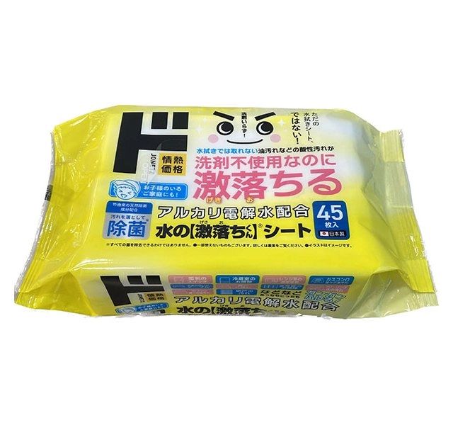 「水の激落ちくんシート45枚」は、ドンキと『激落ちくん』のコラボアイテム。気になる部分を拭くだけで、水拭きでは落としきれない油汚れなど酸性汚れを落とします。竹由来の天然除菌成分を配合し、汚れを落として除菌するので子どもがいる家庭も安心です。