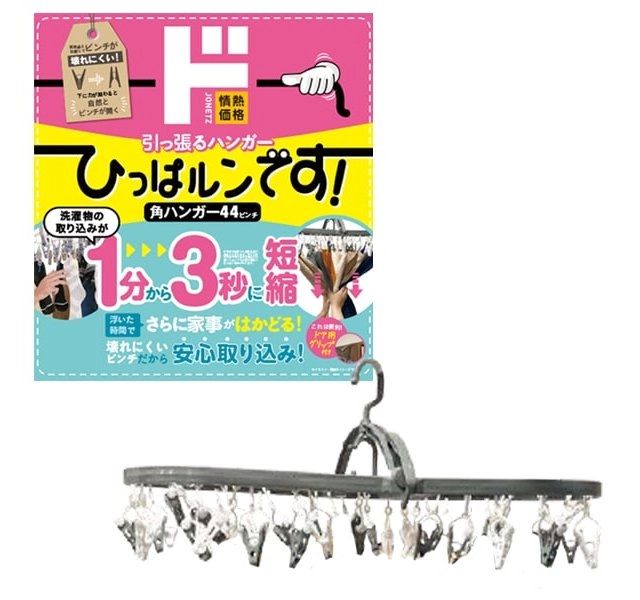 家事の時短に!「引っ張るハンガー ひっぱるんです! 角ハンガー44ピンチ」