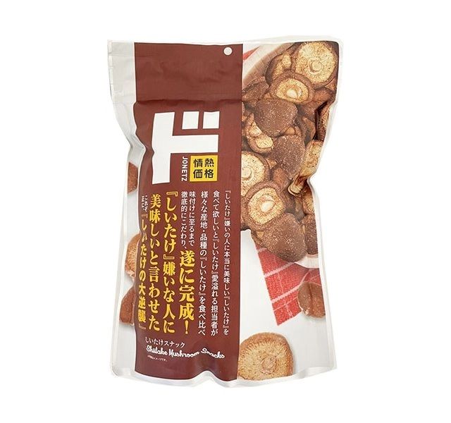 しいたけ愛の高い担当者が、さまざまなしいたけを食べ比べて完成させた「しいたけスナック」。肉厚のしいたけがごろごろ入っています。香辛料や醤油など旨味がたっぷりつまったスナックです。