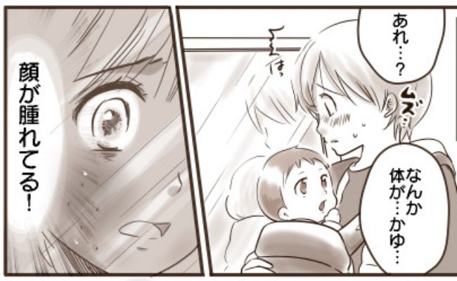 全力で走ったあとに長男を連れて帰宅した私は、体の異変を感じとりました。全身が痒くてしょうがないのです。10分ほど経つと顔が腫れてきたのでおかしいと思い、義母に長男を預けて病院に向かうことにしました。