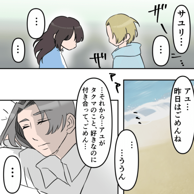 「それから・・・アユがタクマの事、好きなのに付き合って、ごめん。」アユは答えることができませんでした。