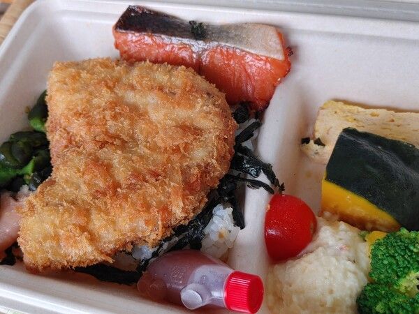 そしてこちらのお弁当は、アジフライだけでなく鮭も入っているんです。