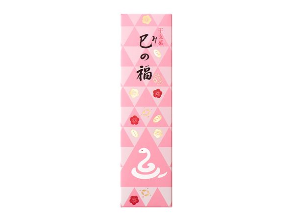邪気を払う鱗文様(うろこもんよう)に、幸運を運ぶ白蛇と、金の箔押しのきらめく宝尽くしをあしらいましたおめでたいパッケージ。新年の贈りもの、詰合せにもぴったりです。
