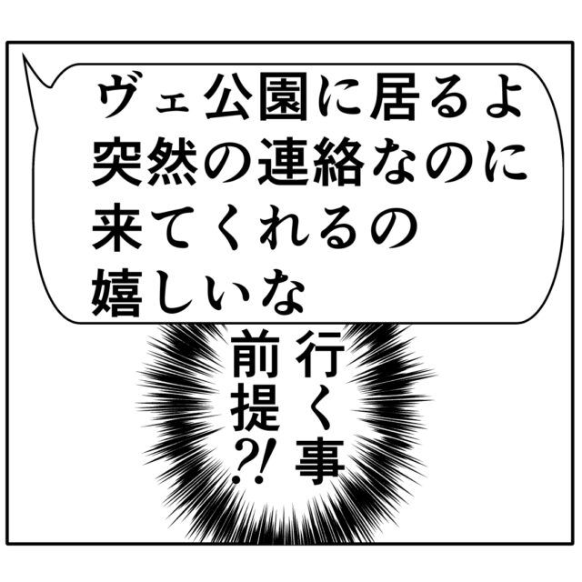 「ヴェ公園に居るよ。突然の連絡なのに来てくれるの嬉しいな」と、なぜかろみ緒さんが行くことが前提のメッセージ。