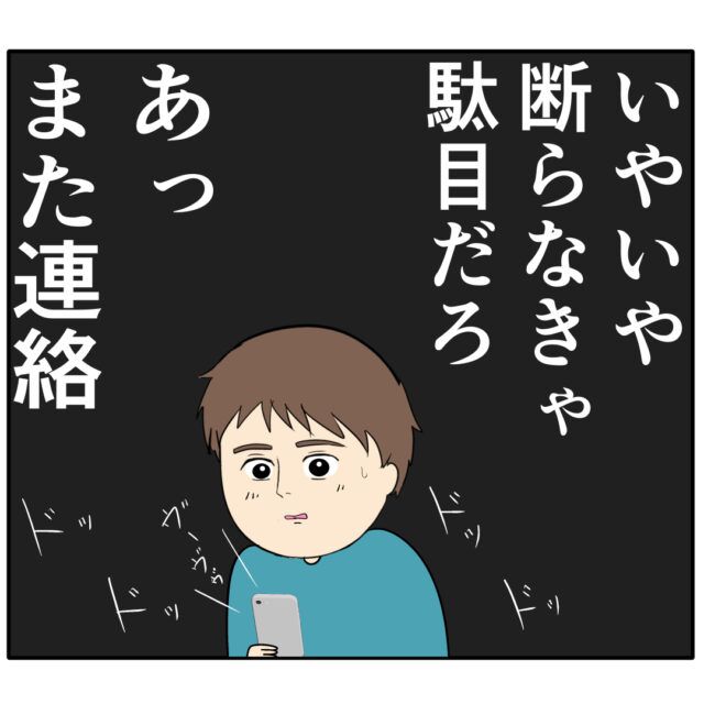 元彼女のジュリ実さんからの「会いたい」というメッセージにドキドキしながらも「いやいや断らなきゃ駄目だろ」とろみ緒さんが思っていると、また連絡がきました。