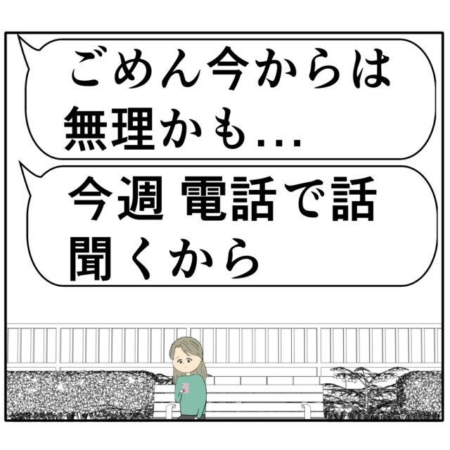 ろみ緒さんは「ごめん。今からは無理かも・・・。今週電話で話聞くから」とジュリ実さんに返信。