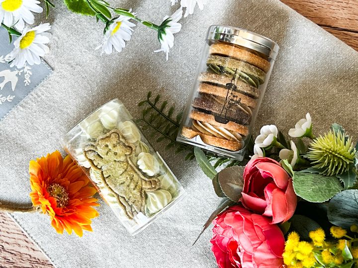 バターサンドはスタンダードな「バニラショコラ」のほか、「カボチャマカロン」など種類が豊富。抹茶メレンゲには、小さなメレンゲのほかに、「ジャンピングとらちゃん」クッキーも同封! 可愛さと味が両立したおすすめのお菓子です。