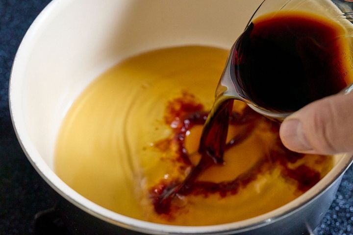 1.Aをすべて小鍋に入れて中火にかけ、沸騰してきたら火を止める。唐辛子、黒こしょう、粉山椒を加えてそのままおく。
