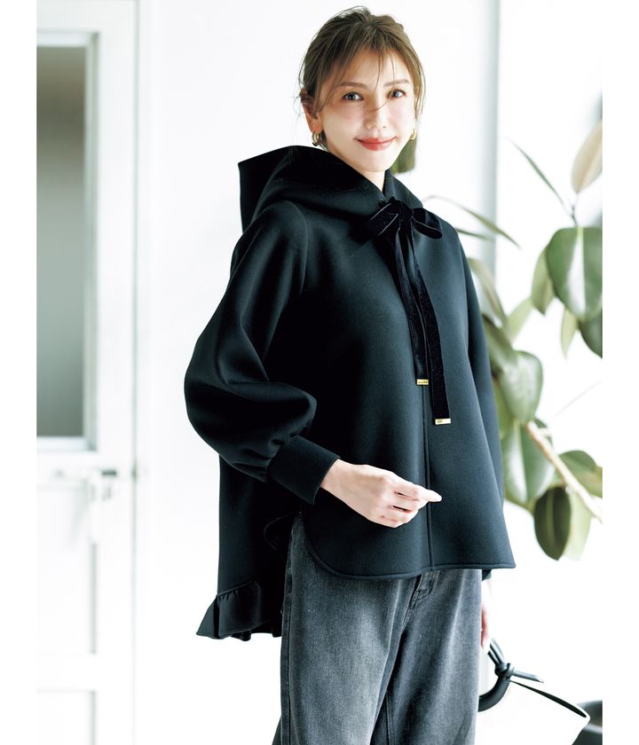 着心地楽ちんで着映えも叶う“甘フーディ”がランクイン。結んでも垂らしても上品さを纏えるベロアリボンとバックフリルで全方位可愛いを実現。デニム合わせもラフになりすぎず、ワンマイルコーデにも自信が持てます。自宅でお手入れ可能なのも推しポイントに。