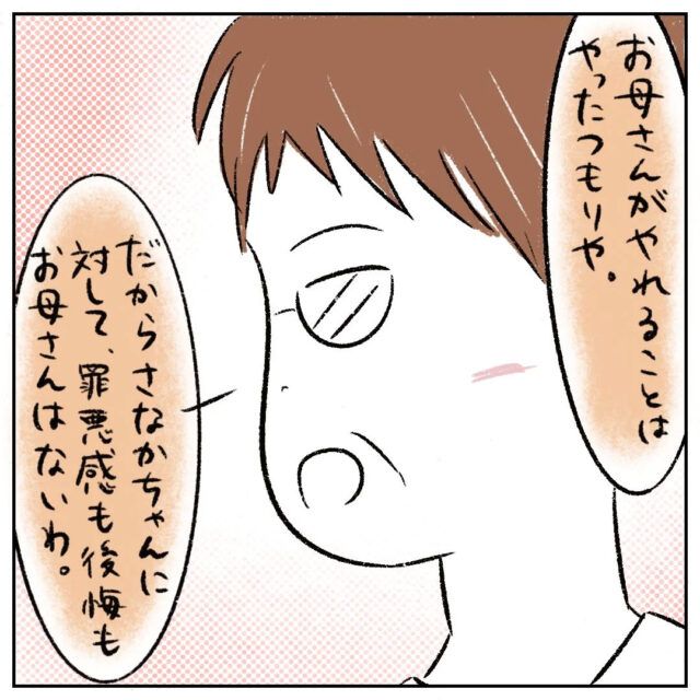 「お母さんがやれることはやったつもりや。だからさなかちゃんに対して、罪悪感も後悔もお母さんはないわ」お母さんは胸を張ってそう言いました。