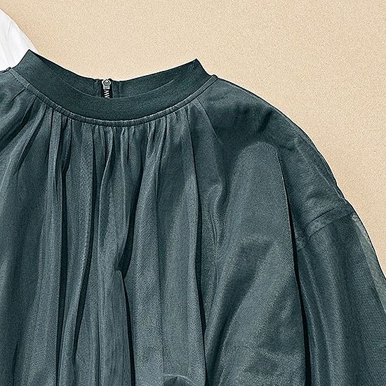 スポーティなポンチ素材のスウェットにチュールが重なった甘ニッシュトップス。しなやかで膨らみすぎないシルエットでさりげなく大人甘ニッシュな雰囲気を演出します。着心地もよく、豪華なチュールが全方位の華やかさを叶えてくれる年末年始のイベントにピッタリなアイテムです。
