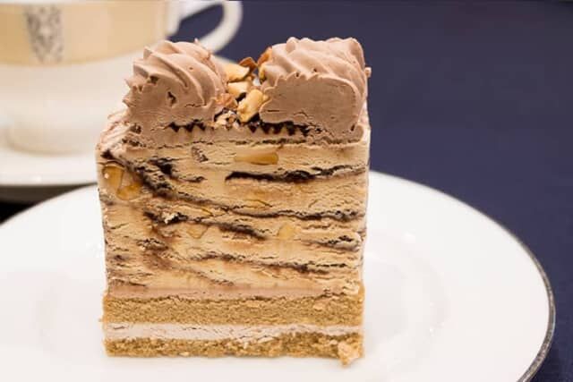 チョコレートのホイップクリームやベースのコーヒーケーキも甘すぎず、ジャモカアーモンドファッジのアイスクリームがを存分に楽しめるカフェモカケーキです。