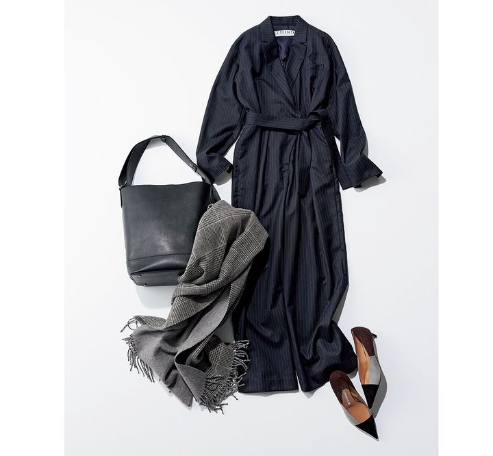 ジャンプスーツ¥60,500(THIRD MAGAZINE)バッグ¥22,550(アンドミューク/アマン)パンプス¥71,500(ペリーコ/アマン)ストール¥101,200(ジョシュアエリス/グリニッジ ショールーム)