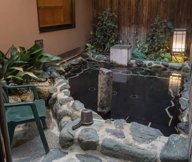 露天風呂は外の景色こそ観ることができませんが、外気が感じられて開放感がありました。サウナを利用する人のために、ととのい椅子も置かれています。