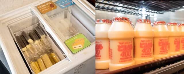 大浴場前の廊下には、15時から25時までは湯上がりのアイスキャンディーを用意。翌朝の5時から10時までは乳酸菌飲料が置かれます。※提供内容は時期により異なります。