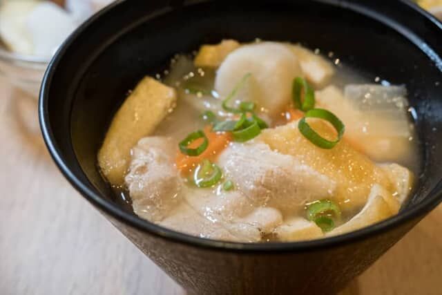 ▲具だくさんの「豚汁」は優しい味噌の味わいで、身体も温まりました