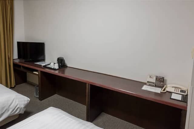 ツインルームのデスクは広く、荷物を置いたりパソコンを広げるのに便利です。
