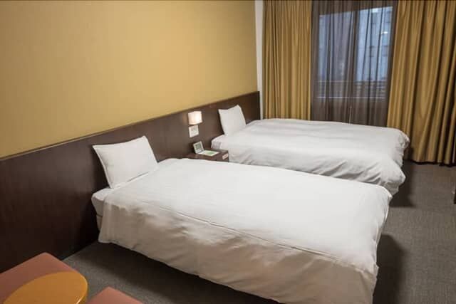 今回は約22平米の「ツインルーム」を紹介します。シモンズ社製のベッドは横幅が90㎝。禁煙か喫煙ルームを選べます。