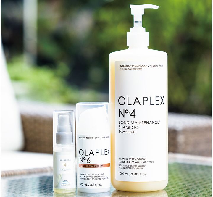 (右から)ハリコシ成分配合。オラプレックス No.4 ボンドメンテナンスシャンプー 1,000㎖ ¥10,780 ゴワつきを抑えるアウトバストリートメント。No.6 ボンドスムーサー100㎖ ¥3,080(ともにサロン専売品)アイロン前につけてカールをキープするオイル。ミインカール40㎖ 01¥3,080(サロン専売品)(すべてVIOLET表参道)
