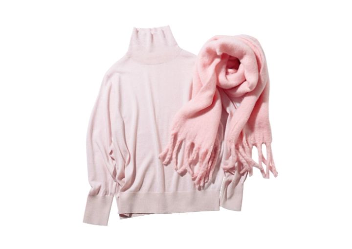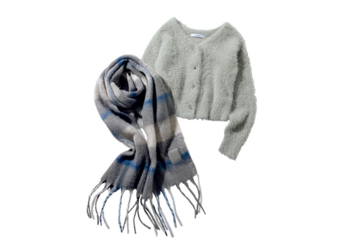 ビッグフリンジマフラー¥2,959/VIS(ジュン) ニット¥8,990/アンフィーロ(オンワード樫山)