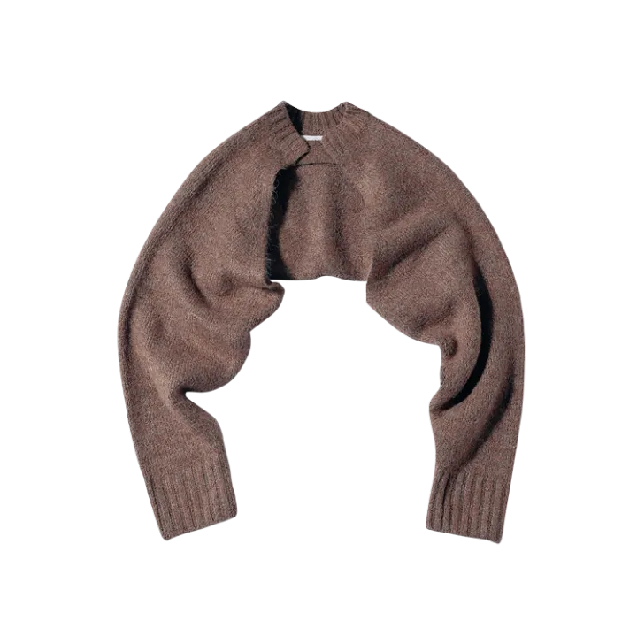 TODAYFULの展示会でひと目ぼれ。ボレロっぽいニットカーデだから着回しがいろいろ楽しめそうだし、ブラウンの色みもめちゃくちゃツボ♡
