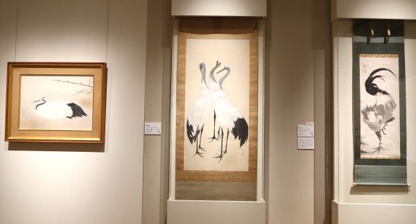 小林古径《鶴(つる)》、川端龍子《鶴鼎図(かくていず)》、伊藤若冲《鶏図(にわとりず)》