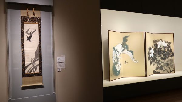 伊藤若冲《叭々鳥図(ははちょうず)》、川端龍子《華曲(かきょく)》