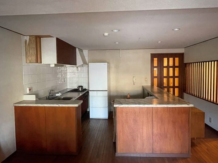以前のキッチンはカウンターに大理石を用いた贅沢仕様でしたが、動線が悪く「いちいち使いにくかった」とか。