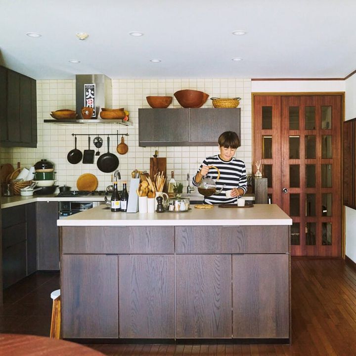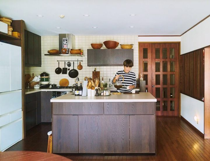 職業柄、キッチンに立つ時間が長いので、床材は柔らかく保温性の高いコルクタイルを採用。自分で「オスモカラー」を塗り、耐久性をアップさせました。