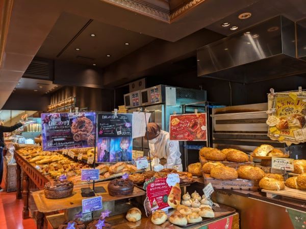 店内はとっても明るい雰囲気で、入り口にある大きなオーブンからは、焼きたてのパンが次々と出てきて、いい香りに包まれています。