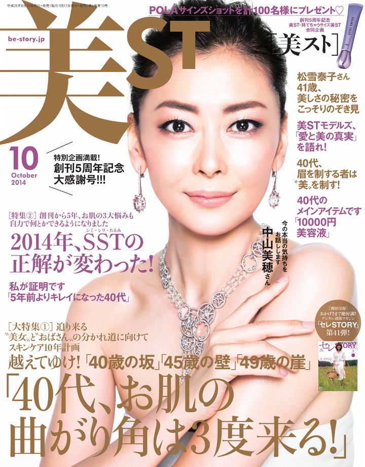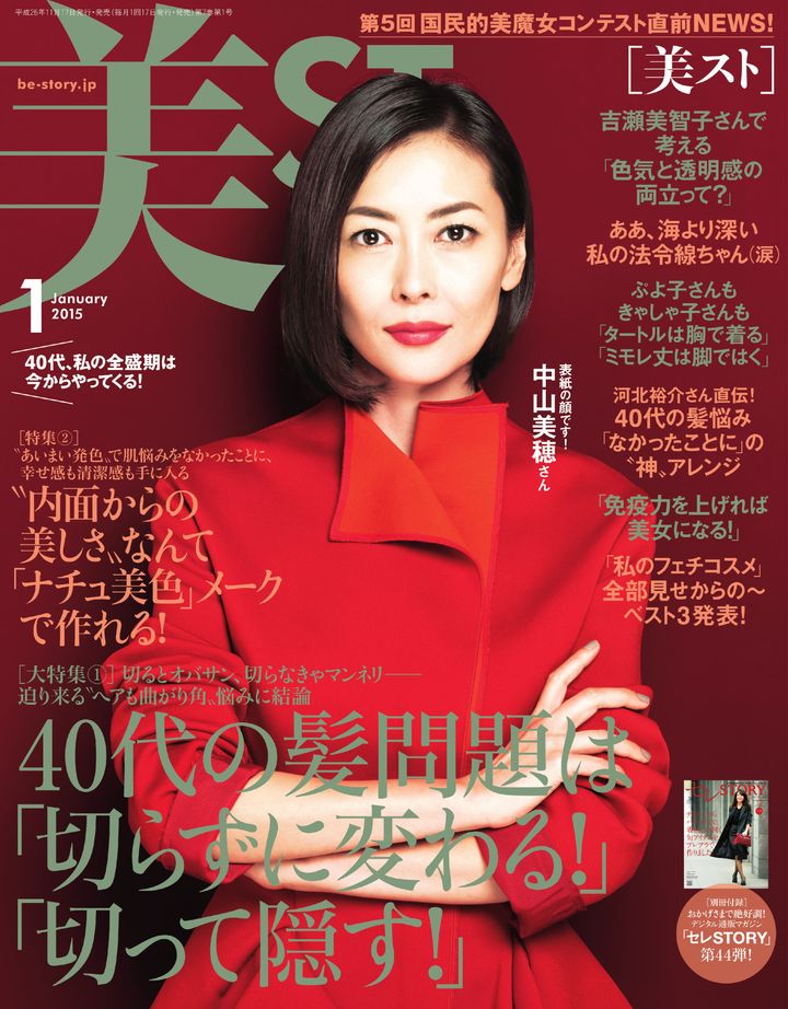 15年前の美ST創刊号で、センセーショナルにカバーを飾ったのが中山美穂さん。まだパリ在住だった美穂さんが久しぶりに女性誌に登場し、変わらぬ美貌とミステリアスな佇まいを惜しげなく披露してくださりました。それはため息すら漏れる美しさで、多くの大人女性の憧れの的に。それから全部で18回も表紙を飾っていただき、2014年~2015年にかけては年間を通しての表紙の顔に。表紙のたびにガラリと雰囲気が変わるその様は、まさに圧巻の一言。中山美穂さんが飾ってくださった歴代の表紙を振り返ります。