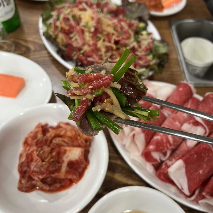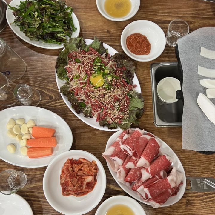 「백제정육점(ペクジェジョンユクジョム)」は、ソウル鍾路(チョンノ)エリアに位置する焼肉店で、新鮮な韓牛(ハヌ)を使用したユッケと焼肉が名物です。とくにユッケはここでしか味わえない特製のタレが絡み合ってて美味しいです!そのまま食べても美味しいですが、チャドルバギ(薄切りの牛あばら肉)やニラといっしょに食べるとより絶妙な味わいが楽しめます。
