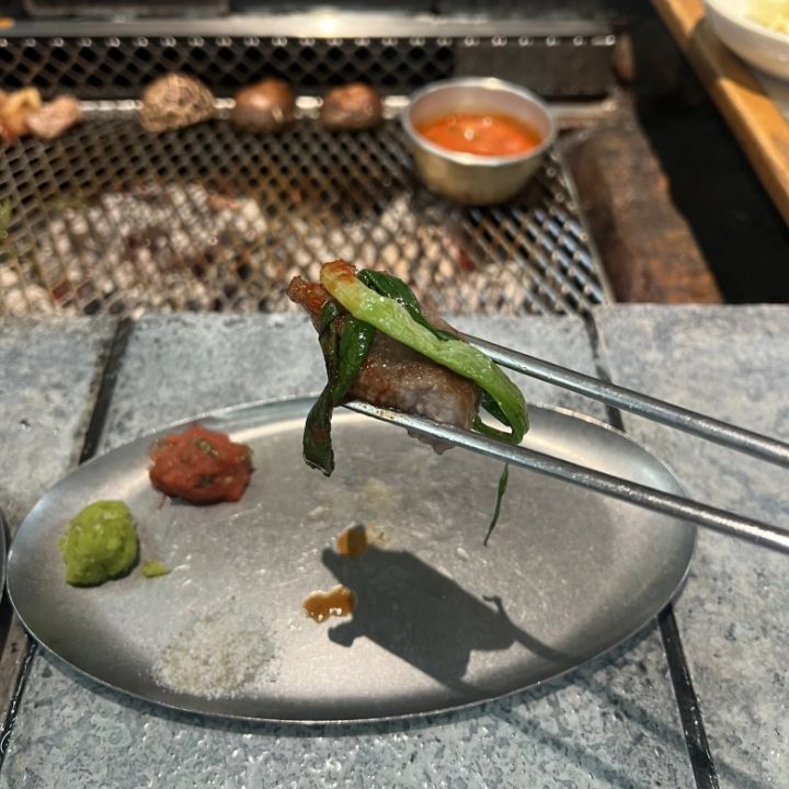 シグネチャーメニューの「재래식 소금구이(チェレシク ソグムグイ)」がとくにおすすめ!わけぎといっしょに焼くことで、ジューシーでさっぱりとした味わいが引き立ちます。塩や塩辛ソース、わさび、キムチなど、自分好みにアレンジできる点も魅力的です。