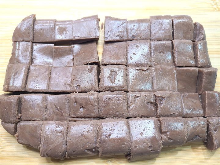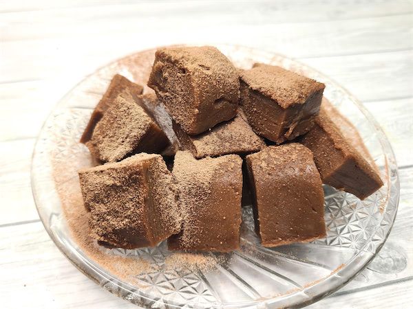 フライパンで加熱しているときから「もうおいしいやつじゃん♪」ってわかるほど、いい匂いとプルンプルンが手に伝わってきてワクワクでした♪冷蔵庫から出してもプルプル感は失われておらず、切った瞬間のもっちもちな感覚は最高です♡味はミルクココアのやさしい味で、もっちもちの食感がやみつきになり、何個でも食べられちゃいますよ♪実は我慢できずに冷やす前のココア餅も食べたのですが、冷やした方が断然おいしかったです!冷たい、プルンプルンのココア餅、最高に贅沢な気持ちになりました♡