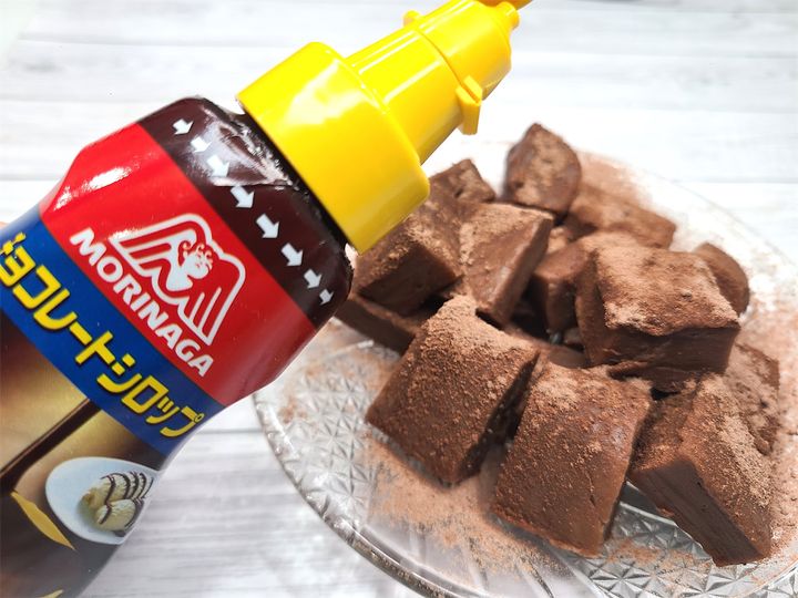 とはいえ、「もっと甘さがほしい!」と欲張りな気持ちになったわたし。試しに自宅にあった森永チョコレートシロップをかけてみたんです…。