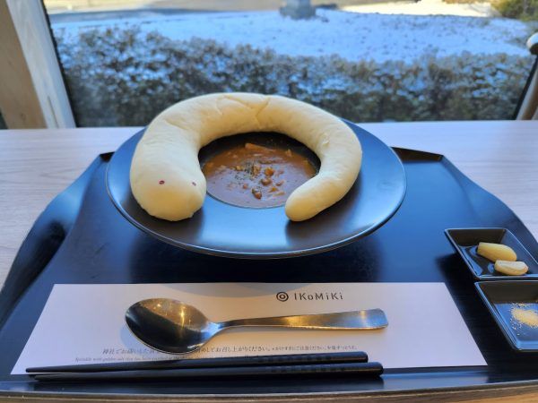 参拝を終えて、お待ちかねの SandoTerrace 休憩棟へ。施設内の食事処 IKoMiKi へ入店、温かい店内にほっとしました。