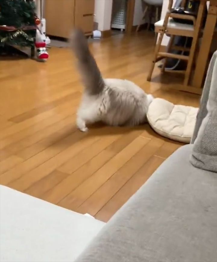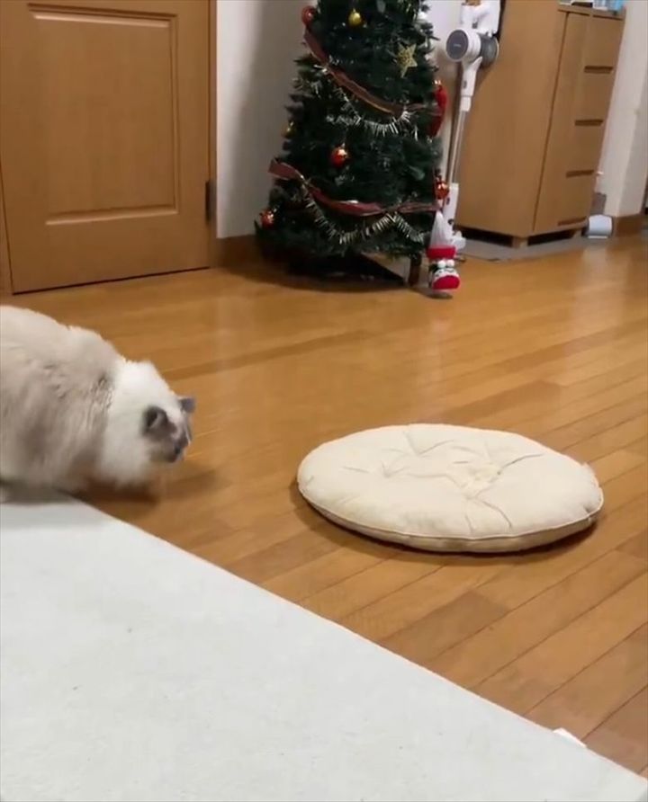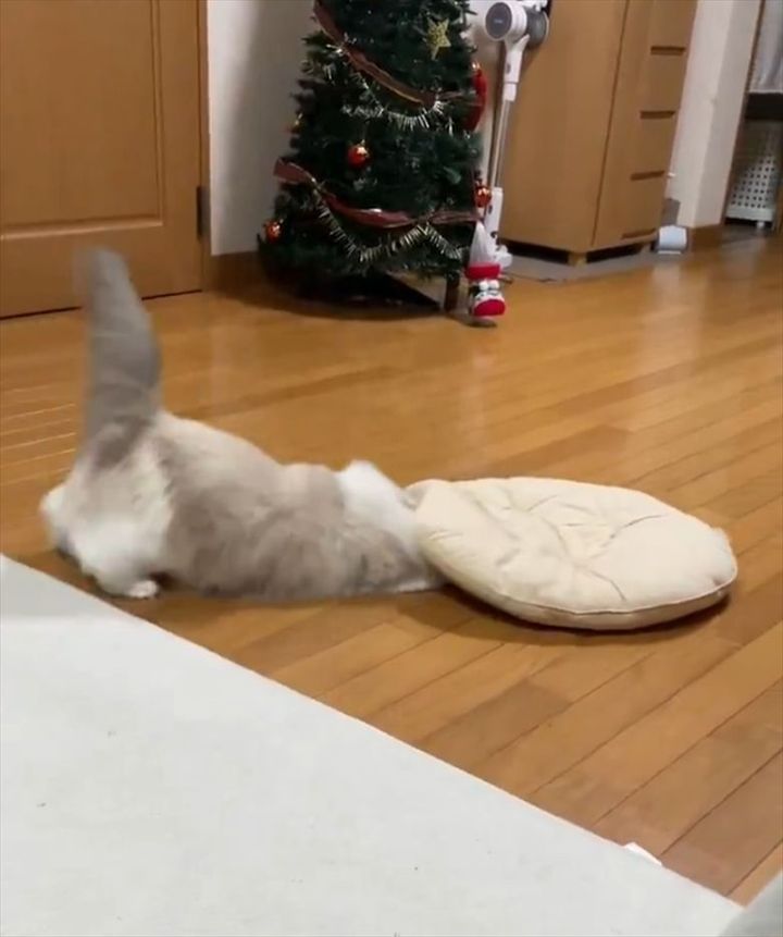 座布団の下に潜ろうとしていたラグドール。 その一部始終を撮影した動画が反響を呼んでいます!