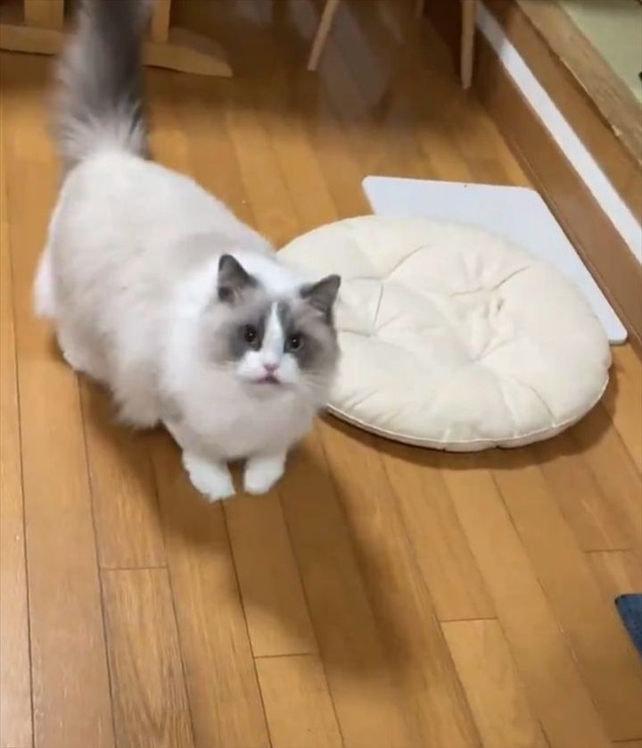 3. 座布団の下に潜りこもうとしたラグドール。愛猫の行動に反響!「何かを伝えに来る姿もかわいい」