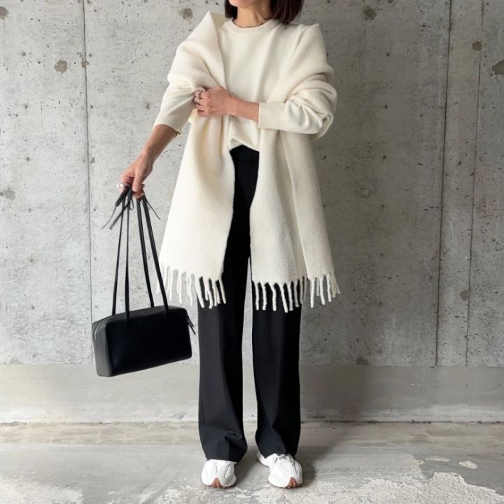 首元にボリュームが欲しいときは、こちらの「スフレヤーンチャンキーストール」がおすすめ。ボリュームのあるマフラーとして使ってもよし、@______mi_さんのように広げてストールとして使ってもよし◎