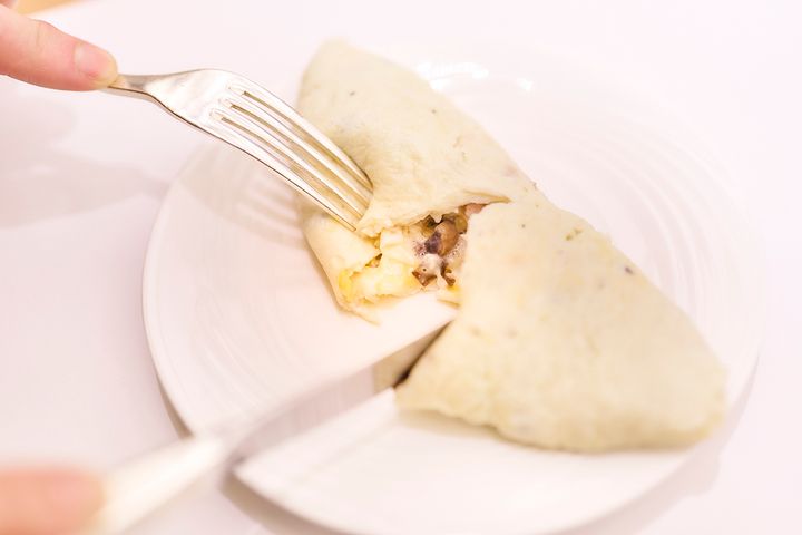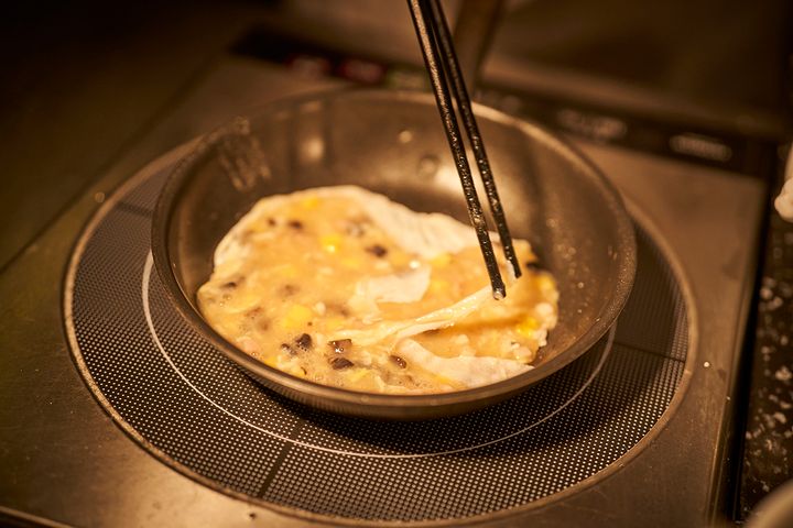 今回は特に人気だという、ハム、チーズ、マッシュルームを入れたオムレツを作っていただきました。