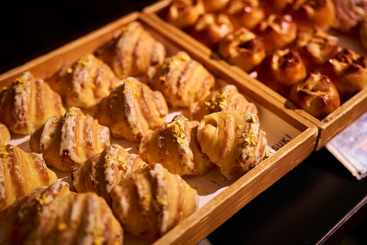 「ピエール・エルメ・パリ」のヴィエノワズリーは、「クロワッサン サティーヌ」「ブリオッシュ オ プラリネ」「パンオレザン エ カネル」の3種類。パンの域にはとどまらない、まるでスイーツのようなリッチな味わいです。起きたての体にほどよい甘さが染み渡り、なんとも幸せな気分に。