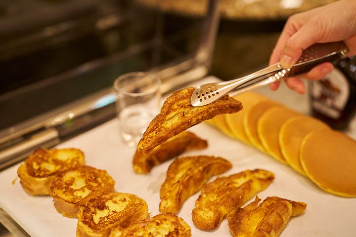 フレンチトーストにはたっぷりとメープルシロップをかけて