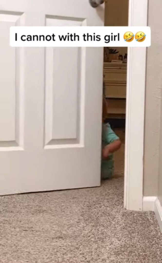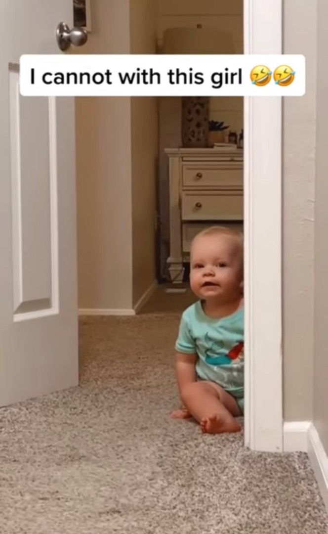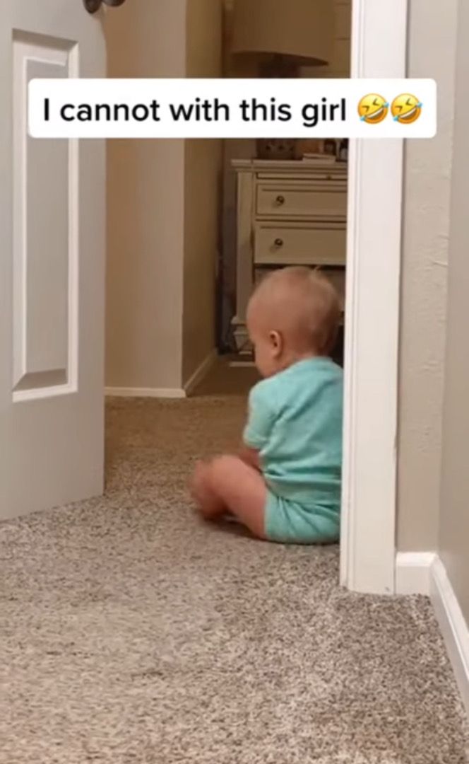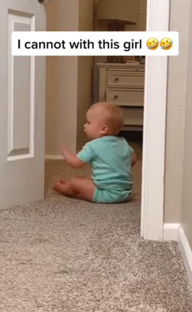 3. ひょっこり姿を現してママにダンスを披露する赤ちゃん。登場から退場の姿まで全てが愛らしい!!