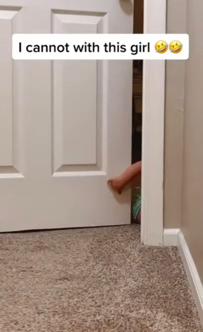 ドアをそっと開けてひょっこり姿を現した赤ちゃん。 これには、撮影者さんも思わず笑ってしまいました。