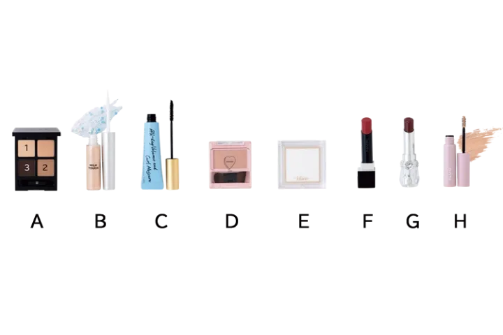 A-3で目尻側1/3に太めのアイライン風に入れたら、下まぶたにも黒目の下から真横へきわにラインを。Bを目頭にのせて、Cを上下まつ毛に塗る。