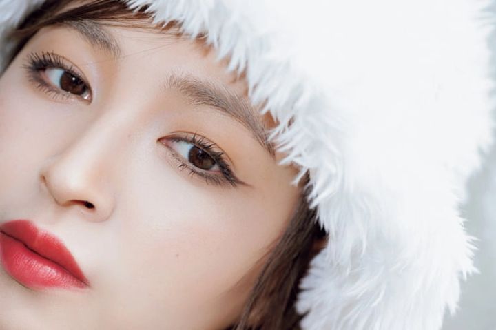 ▶︎ツヤを携えたノンパールのワインレッド。シアーな赤リップでこっそり立体感を。